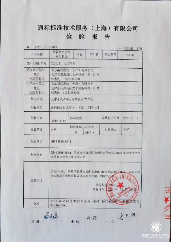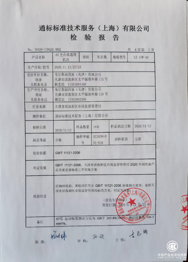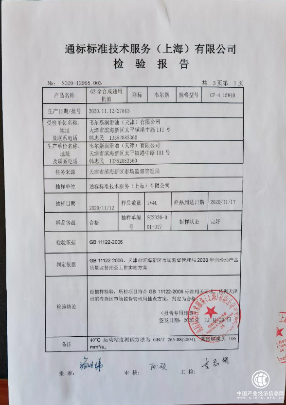 2020年11月份,市场监督管理局对韦尔斯进行了一轮检测 ,经过严格的审查检测,韦尔斯润滑油不仅顺利通过抽检,并且全部抽检实测结果均合格并优于质量指标参考值;十多年的检测结果,始终如一,证明韦尔斯润滑油始终以先进技术和产品质量为第一竞争力,以优质的产品品质占领市场,深入人心,韦尔斯润滑油是一个经得起考验的品牌,韦尔斯的产品品质是过硬的,是值得信赖的。对此,作为一名韦尔斯人,我们甚感骄傲。
